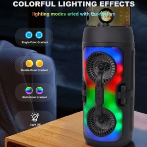 haut-parleur Bluetooth portable assure une commodité sans fil en permettant de diffuser de la musique depuis un téléphone, un ordinateur ou tout appareil compatible Bluetooth, sans les contraintes des câbles. Avec une puissance de sortie de 25W et une plage de fréquence de 20Hz à 20kHz, il offre un son de haute qualité, idéal pour le karaoké, les fêtes ou le divertissement à domicile. Sa batterie longue durée offre une autonomie de 5 à 10 heures, parfaite pour les événements en extérieur. Il dispose de fonctionnalités multiples comme la lecture MP3, la radio FM, les cartes TF, la connexion USB et l’entrée audio ligne. Son design compact et son éclairage LED coloré, combinés à un microphone portatif inclus, en font l'accessoire idéal pour animer vos soirées