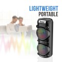 haut-parleur Bluetooth sans fil Sing-E offre un son puissant de 20W avec un woofer de 4 pouces pour une expérience audio immersive. Il dispose d’une batterie intégrée, de lumières LED RVB, et prend en charge AUX, USB et cartes mémoire. Sans écran ni télécommande, il reste pratique grâce à son microphone intégré. Son design unique en fait un choix idéal pour une utilisation mobile et festive
