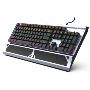Le clavier mécanique 104 touches équipé de switches bleus offre une expérience de frappe tactile et audible, idéale pour les utilisateurs recherchant précision et retour sensoriel lors de la saisie.